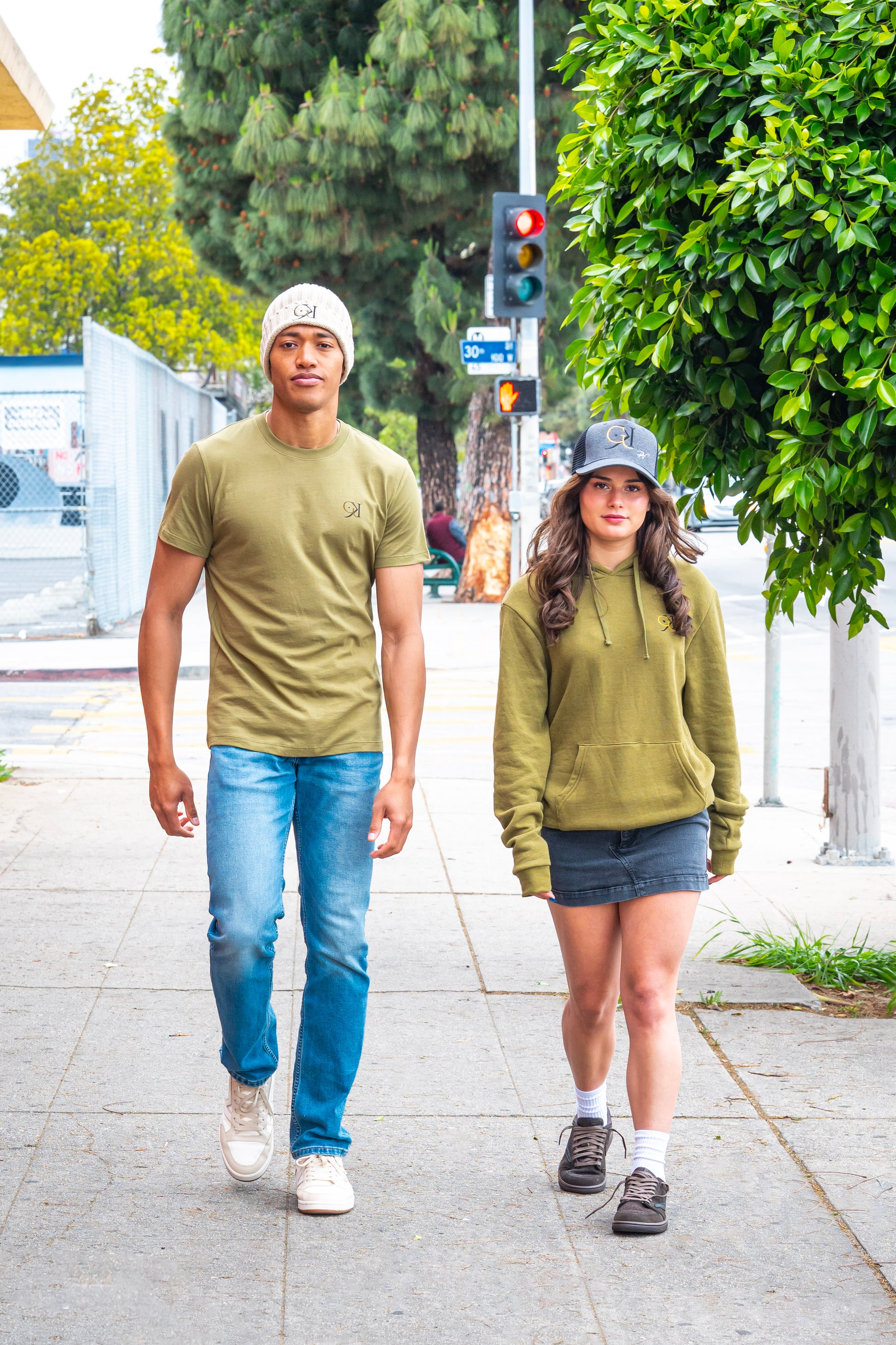 This charcoal gray trucker cap features a breathable mesh back and structured front panel. It showcases a bold "GK" monogram in yellow and black embroidery, with a white signature, "PV" detail on the side. It is ideal for casual wear, gym, and outdoor activities.